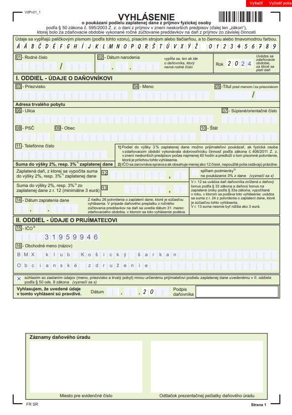 Pomôžte a darujte vaše 2% z dane aj v roku 2024.